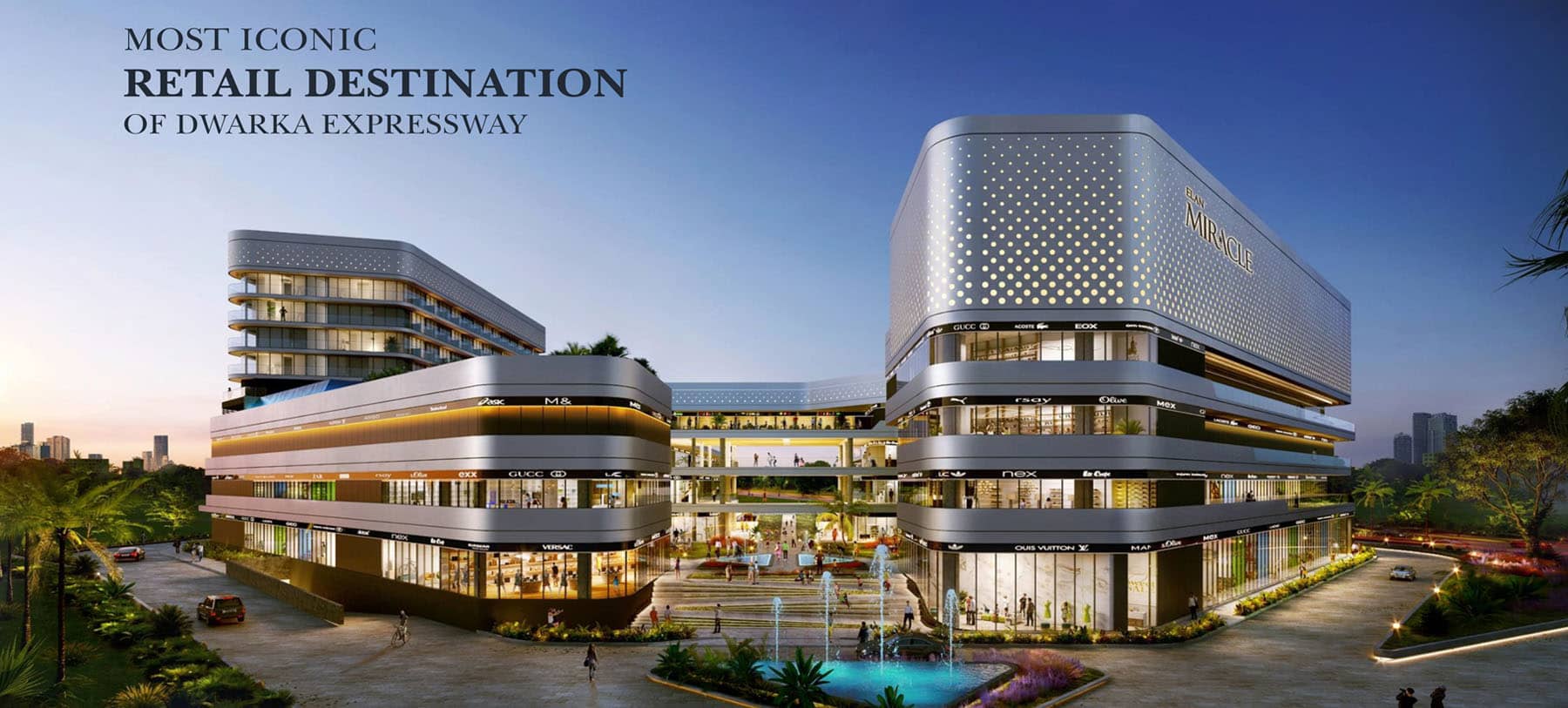 If we talk about amenities you will find that property is offering High street retail with double heights shops, Food court, Multiplex by PVR and luxury serviced apartments with one of the biggest club house in commercial project. The property is offering luxurious area of 5.9 acres of land with beautiful landscapes and greenery all around the property. In terms of safety and security also property is very amazing offering full time CCTV surveillance and property staff assistance. The property is been designed by world class experienced architects and everything is very systematically placed. Investment with Elan Miracle is very wise decision with greater returns expected.